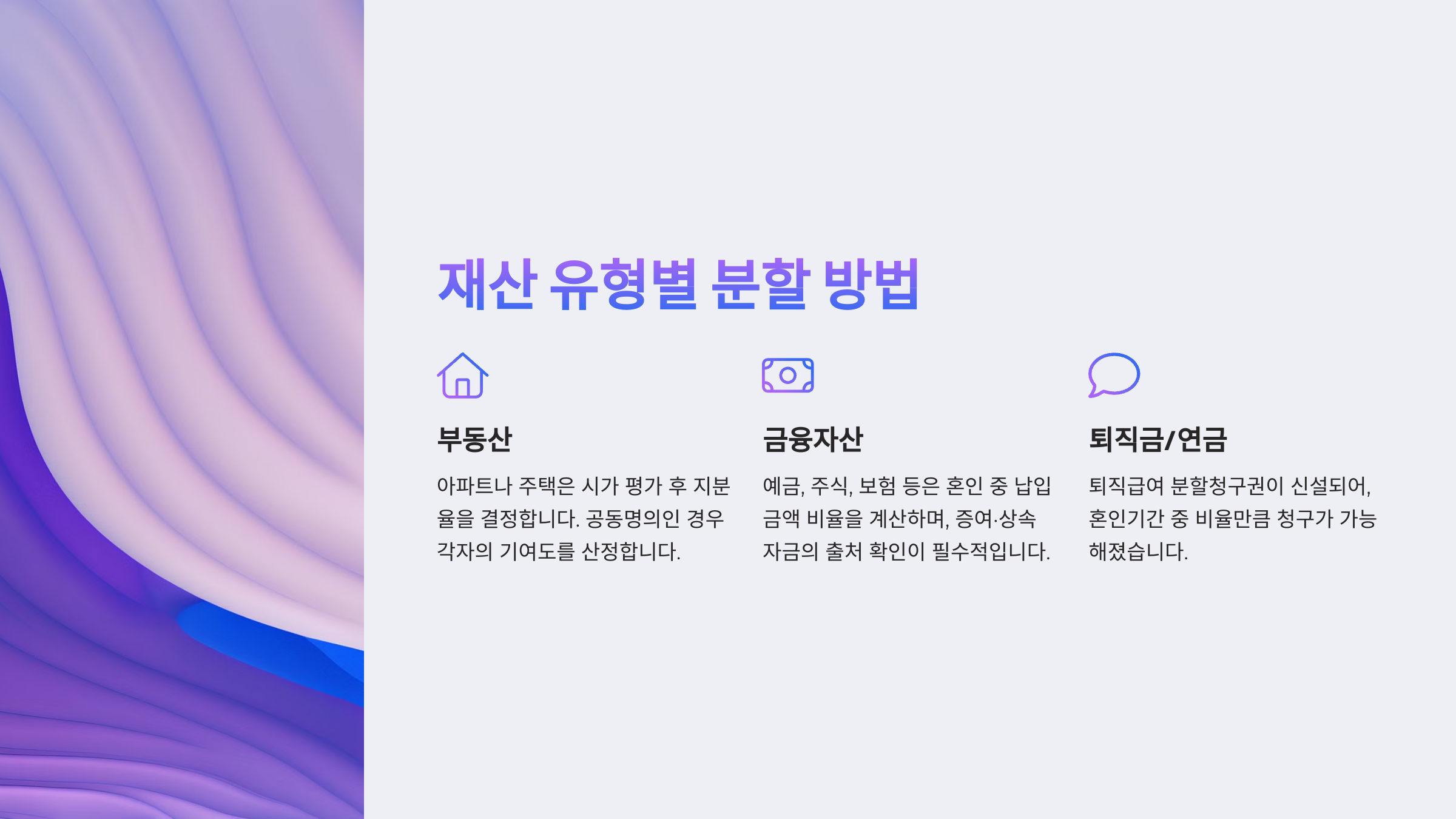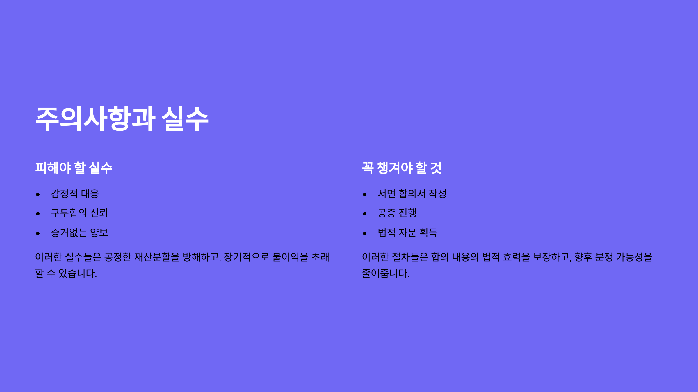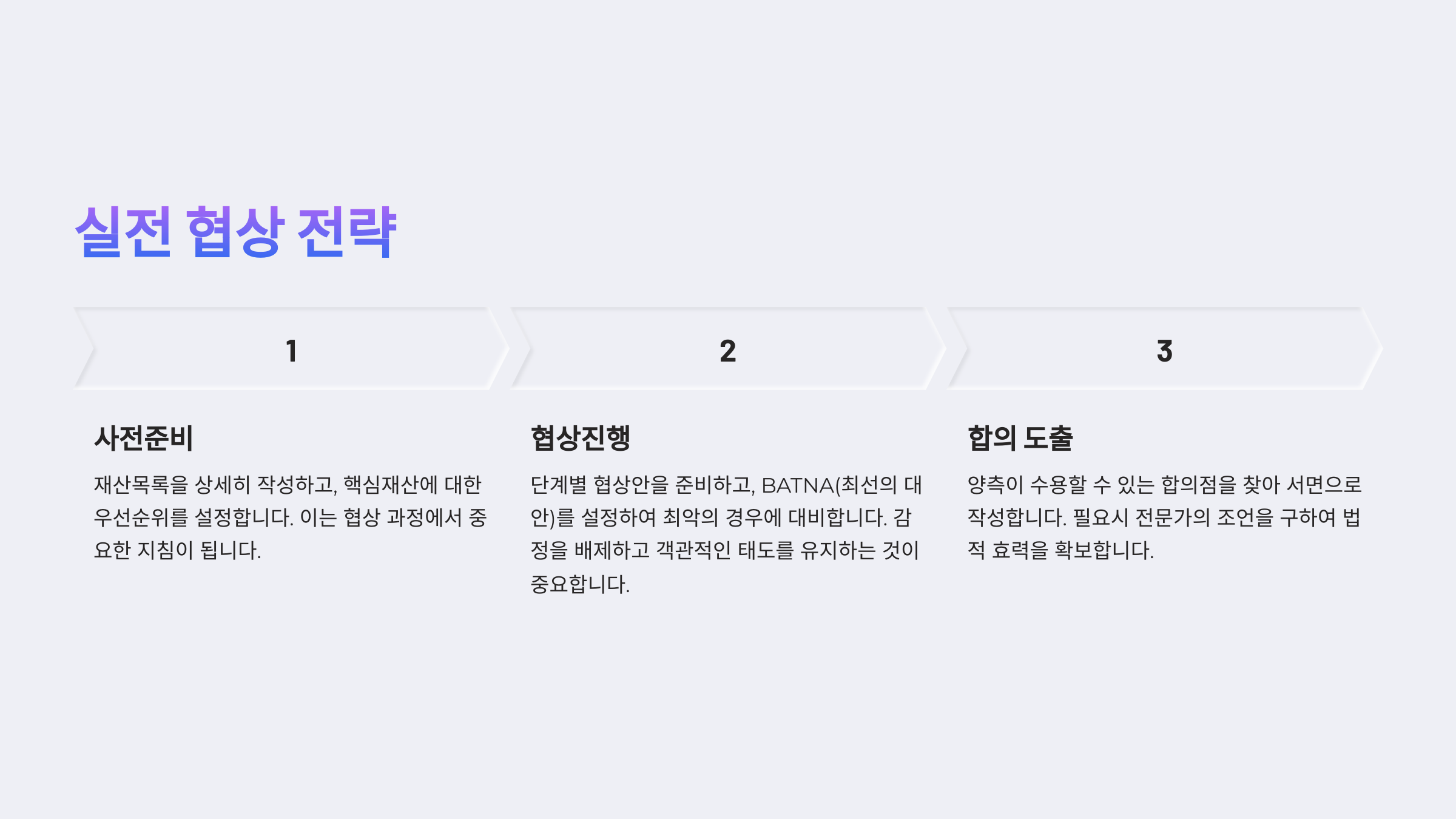 재산분할은 단순한 금전적 문제를 넘어 새로운 삶을 시작하기 위한 중요한 과정입니다. 감정적 대응을 피하고, 철저한 준비와 전략적 접근이 필요합니다.
