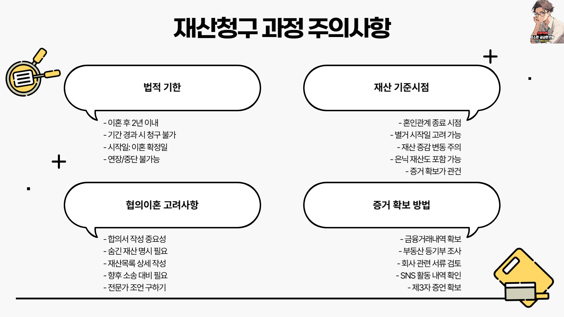 정말 많이 듣는 질문인데요, 안타깝게도 이혼 후 재산청구는 시간과의 싸움이에요. 2년이라는 시간이 지나면 아무리 명확한 증거가 있어도 청구가 불가능해요. 제가 상담했던 분들 중에는 이 사실을 몰라서 수억 원의 재산을 포기한 경우도 있었어요.