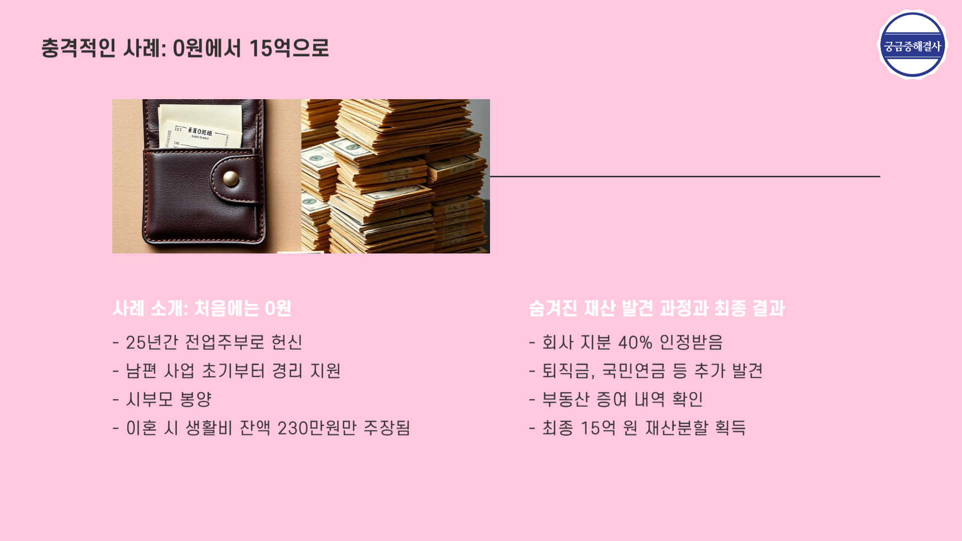 "재산분할 0원... 그런데 6개월 뒤 15억을 받았습니다"
